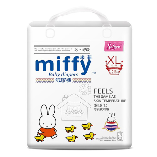 米菲芯呼吸系列婴儿纸尿裤,采用热风面层及底膜,具有亲肤透气的特点,让肌肤自由呼吸,宝宝活动更自如。