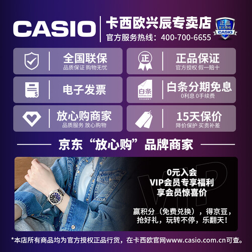 这款卡西欧手表搭载闹铃、照明及秒表等丰富功能,可灵活满足你的不同所需。内置太阳能电板,为其提供充足运转动力,走时准确。