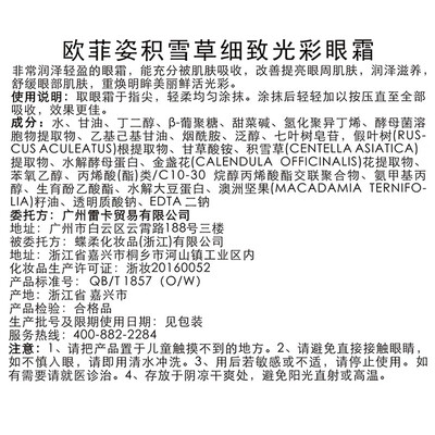 采用澳洲坚果籽油成分,恢复受损的细纹,重新解锁美丽鲜活双眸。蕴含积雪草成分,进一步加快肌肤的吸收,深层滋养眼周。