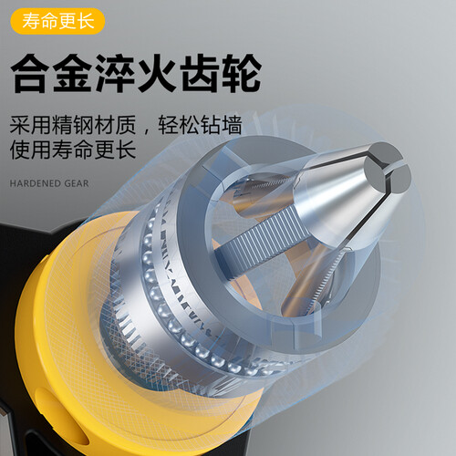 精选优质的全铜线电机,强劲动能运行更稳定,搭配金属冶金齿轮,高速旋转快速打孔。贴心的深度尺设计,预留打孔深度避免穿墙。