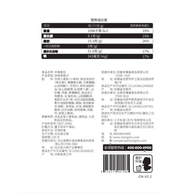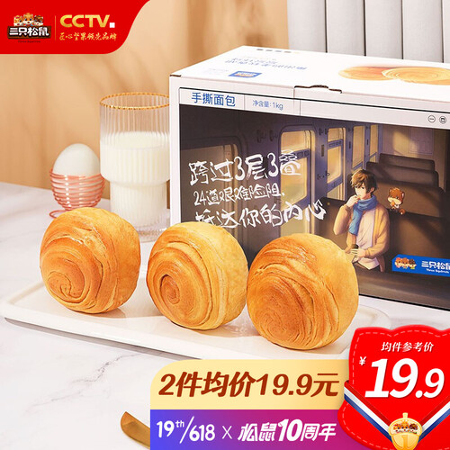 三只松鼠 可口饱腹手撕面包