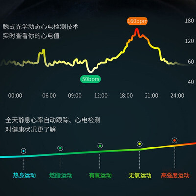 搭载OLED屏幕高清彩色屏,无惧强光,可以清晰读取数据。可以实时对心率进行监测,为你的健康保驾护航。