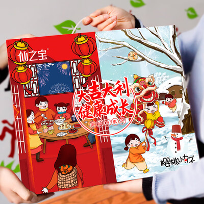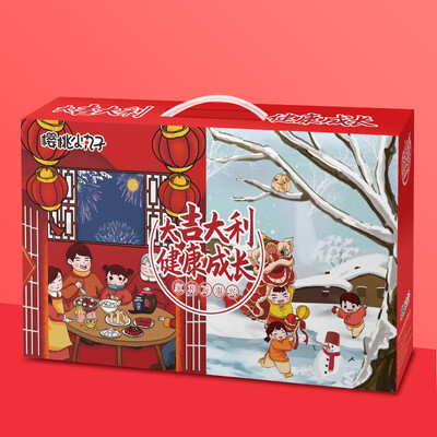 喜庆的大吉大利礼盒,带有深情地祝福,还有团圆插画,过年和家人一起吃。整箱都是果冻食物,饭后吃很解腻。