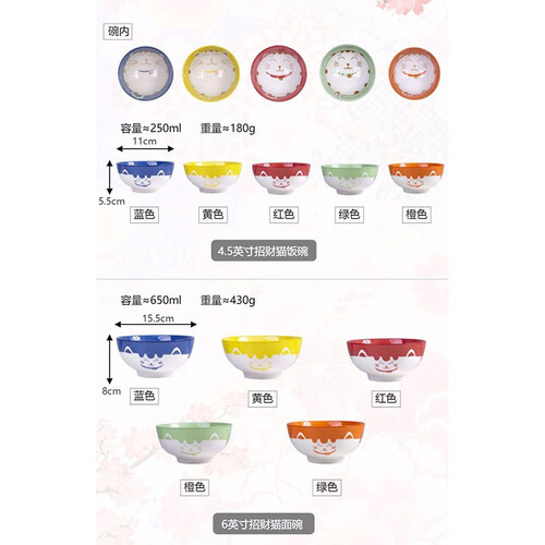 选取优质陶土人工制胚,使用安心,为你打造健康品质生活。还加入了釉下彩工艺,釉面光滑,色泽鲜艳,带来高颜值的日式风格。