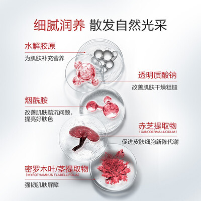 融合4重活性肽成分,由内而外紧致肌肤,改善肌肤因老化引起的问题。同时赤芝提取物,水润舒缓,修护肌肤屏障。