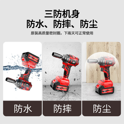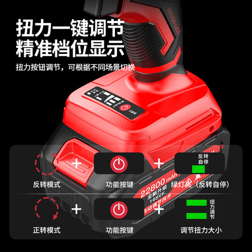 除了拥有强大扭力之外,电动扳手内置双电池,满电情况下可提供长时间的续航,助你持续作业不误工期。