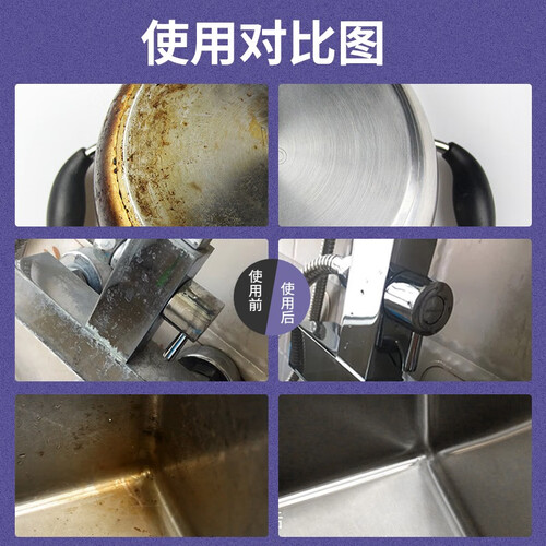 针对水垢、皂垢、铁锈2分钟就能轻松去除,安全无腐蚀性使用后光亮无划痕;特别添加了光亮因子,让氧化的不锈钢灶具等亮洁如新。