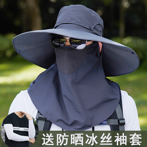 玖慕深灰色带遮脸防晒帽
