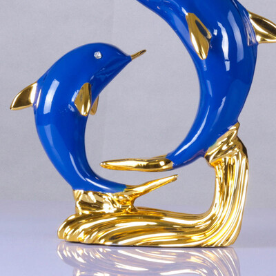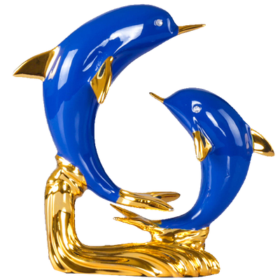 海豚象征着忠贞与呵护,是爱情的守护神,姿态优美的造型,灵动又不失文艺气息;蓝色和金色的碰撞,告别单调,带来视觉上的惊喜。
