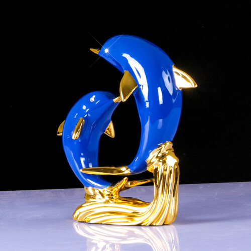 上善好 蓝金海豚装饰摆件