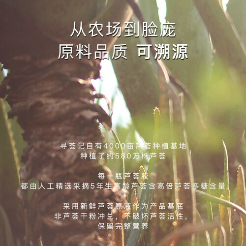 选用天然新鲜芦荟,不使用农药,清爽滋润。使用小分子提取技术,渗透能力强,皮肤易吸收。无香精、色素、酒精,使用更健康。