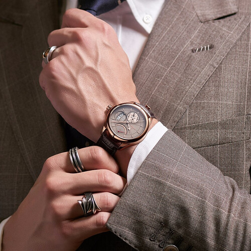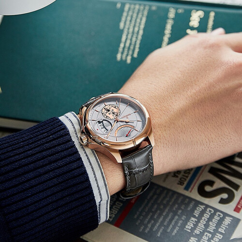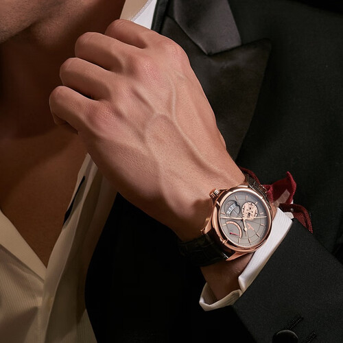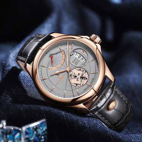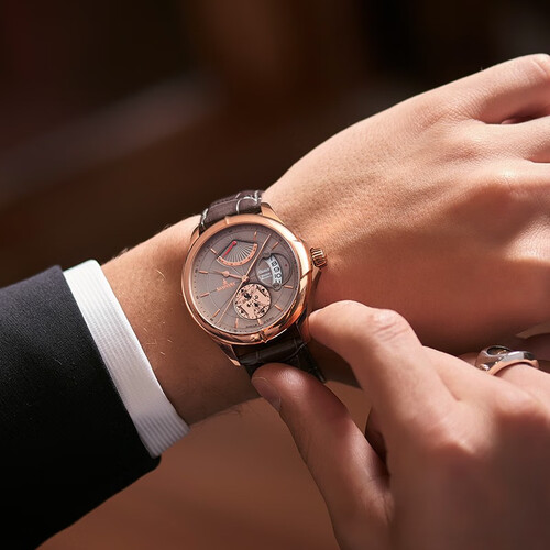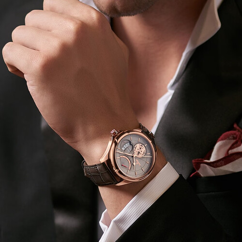可旋转的人体比例,复杂的机械力学设计,用科学创新方式来显示时间。根据达芬奇数学领域研究见解,设计出黄金分割表盘。