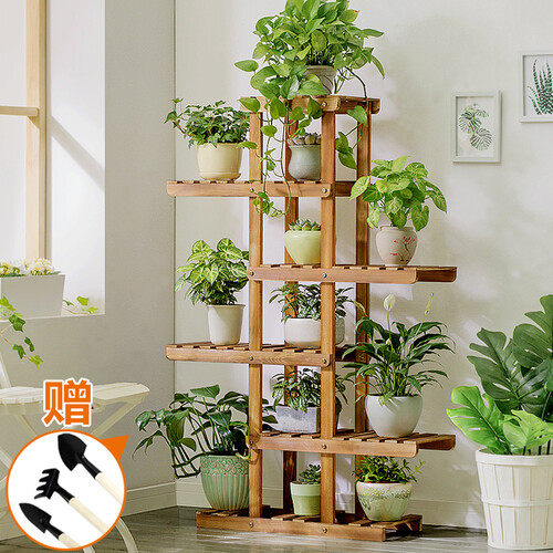 木马人 实木阶梯落地式 花架