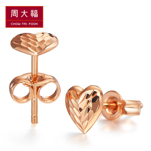 周大福 心形18K金耳饰