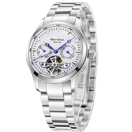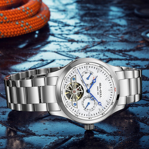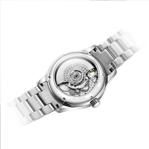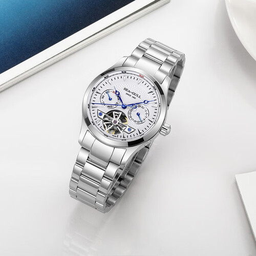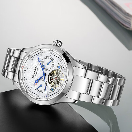精致的镂空设计彰显丰富层次,干净的银色外观简约大方,搭配撞色指针,方便清晰读时。优质精钢表壳硬度高,防刮耐磨。