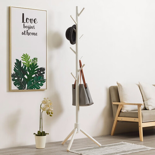 此款简易衣帽架选用新西兰品种松木,纹理通直,不易变形,经久耐用;架子占地面积较小,容量较大,节省空间。