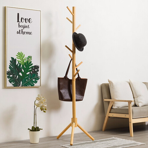 表面选用清漆涂抹,不遮挡木材纹理,令人赏心悦目。搭配多挂钩设计,落错分布于杆体之间,满足您的不同置物需求。