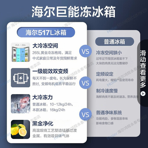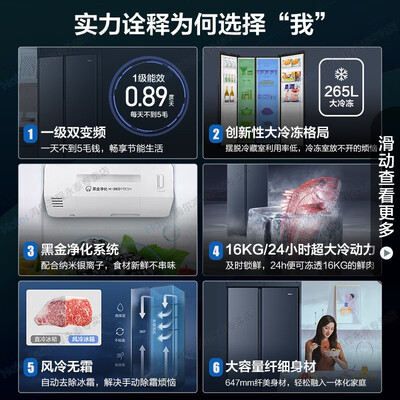 采用双变频技术,自动调节运行状态,实现恒温养鲜,同时降低能耗和噪音。4大抽屉分区精储,食物不易串味。
