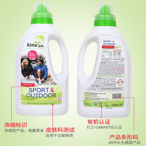 为运动衣物而研制,精选有机天然配方,轻松去除衣物上的异味和污渍。酸碱中性无添加,呵护衣物和双手,安心清洗。