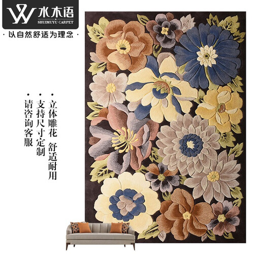 3D立体雕花设计,花瓣晕色自然,图案亮丽立体感十足。选用了羊毛做为原材料,细腻透气弹性好,使用美观大气。