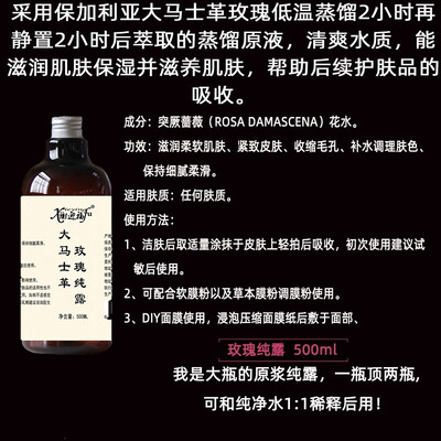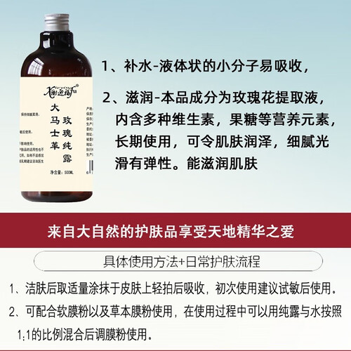 大马士革玫瑰萃取的纯露,拥有清爽的质地,可被肌肤迅速吸收,并且帮助后续护肤品的吸收。侧重于补水,令肌肤恢复水润状态。