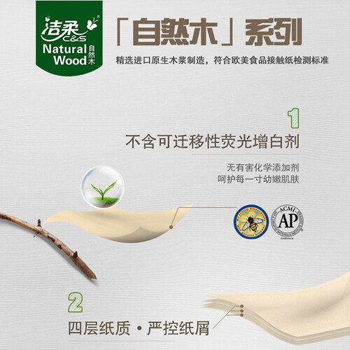 选用原生木浆,色泽自然质朴,而且干净卫生,使用更加健康;无有害添加剂,呵护你的每一寸幼嫩肌肤,给你不一样的使用体验。
