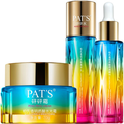 梦幻的渐变色瓶身包装,颜值令人心动。套装包含爽肤水、原液精华和面霜,一套搞定日常护肤,拥有嘭嘭水光肌。