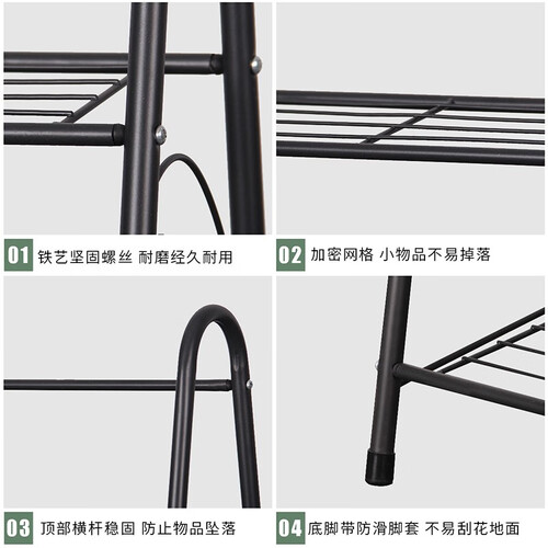 采用防锈加固圆管,经高温喷涂不易生锈,坚固耐磨;接口处有坚固螺丝相接,稳固牢靠;十字线径加密网格,放置小物品也不易掉落。