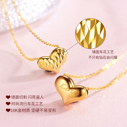 散发着浓浓爱意的爱心吊坠,做镜面车花工艺处理,同时刻有love字母图案,点缀脖颈间尽显浪漫风情。