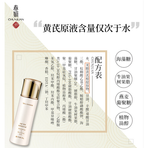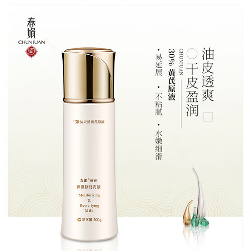 添加了黄芪成分,含有30%黄芪原液精华,乳液更细腻柔滑、质地柔和易于吸收、滋润肌肤,而且保湿效果好。