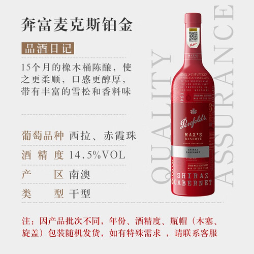这款奔富葡萄酒以传统工艺酿造而成,其酒液通体顺滑无杂质,酒体丰腴饱满,细细品尝,香浓鲜美的滋味润和于心间。