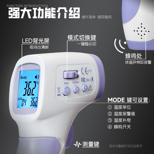 精心设计的大口径测温探头,不容易因为微小的距离移动而造成读数不稳定。弧形设计按钮,方便测量,使用更加便捷。