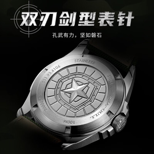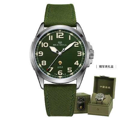这款手表采用军旅风格设计的外观,别具硬朗格调,展现男性大气稳重的气息。红色五星造型的指针,具有纪念意义。
