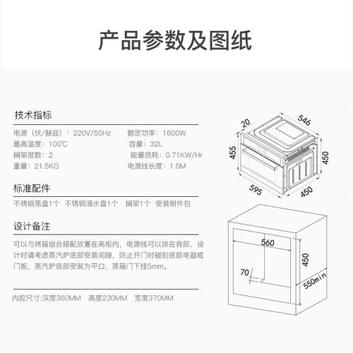 内芙 嵌入式搪瓷蒸烤箱