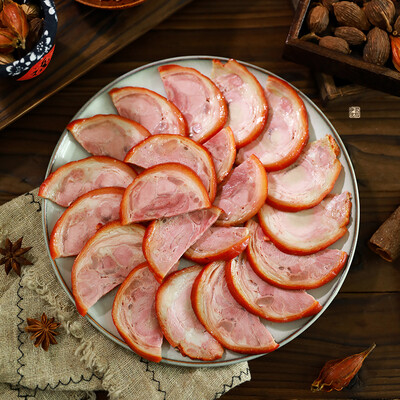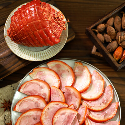 源自清朝光绪年间的宫廷配方,采用四代老汤古法工艺,滋味正宗。剔骨后用绳紧致包裹,肉质肥瘦相宜,皮薄肉嫩。