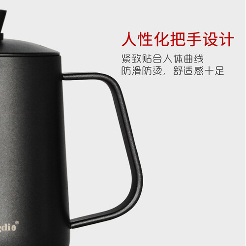 壶身采用304不锈钢材质,耐高温无异味提升耐磨率,经典的细口壶嘴设计轻松打圈冲泡,小白也能冲出一杯好咖啡。