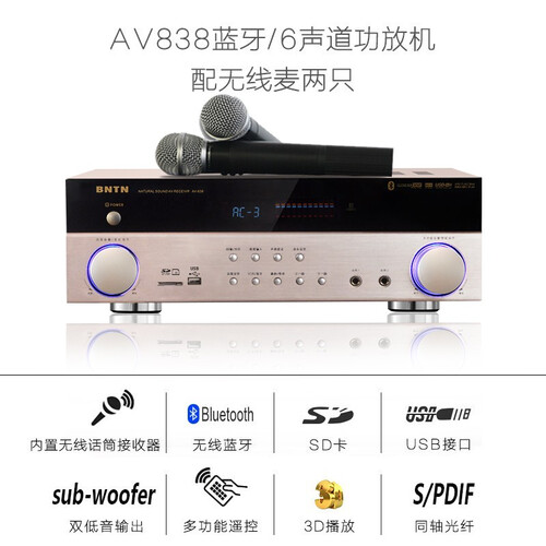 功放内置同轴、光纤数字输入,可兼容市面上99%的电视机和其他音源设备。功能丰富,让你在家享受K歌乐趣。
