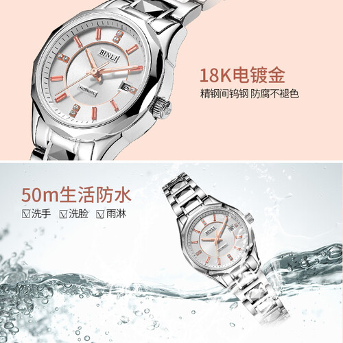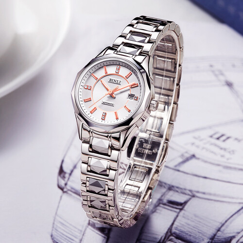 表圈选用钨钢材质打造,经过抛光工艺处理后,光泽亮丽,持久佩戴不易腐蚀生锈。选用优质的机械机芯,运行稳定。