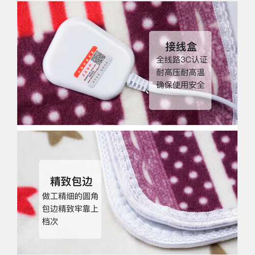 采用亲肤毛毯面料,舒适透气不易起球,整体发热线一体安装,无焊点无接头,防水不漏电,而且温度可调,过热自动断电。