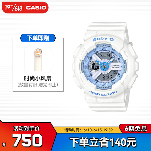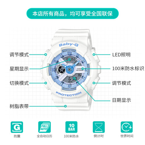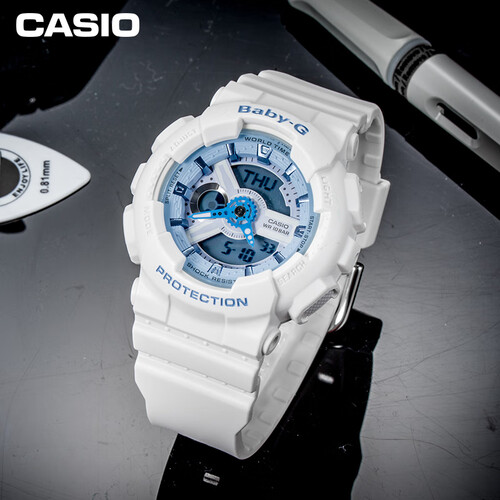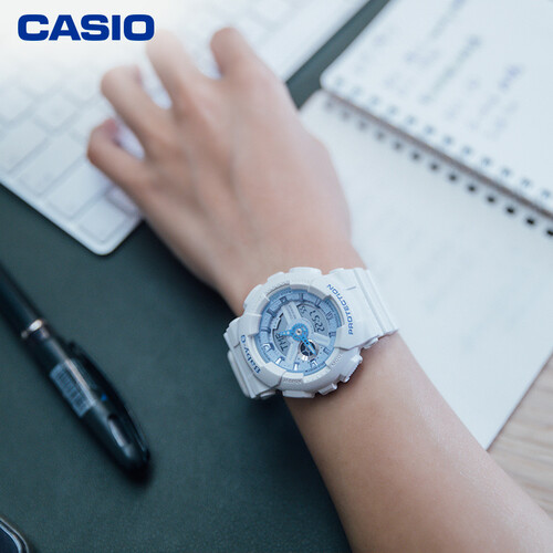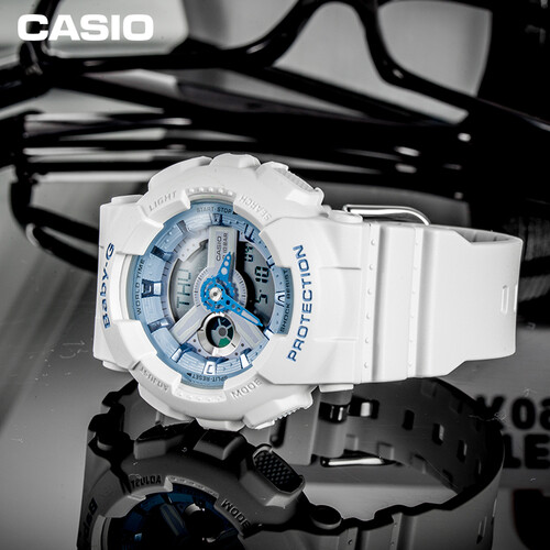 清爽蓝白配色,元气清新,少女风满满。选用表款BA-110为原型,继承双显设计、防震等诸多硬核性能,内外兼修,可靠起范儿。