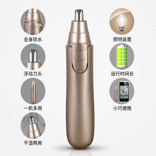 4D浮动|4D智感浮动设计,内刀与保护壁拥有安全距离,贴合皮肤切割,不伤鼻腔,转动即可360度清除鼻毛,个性照明设计,让修剪更方便。