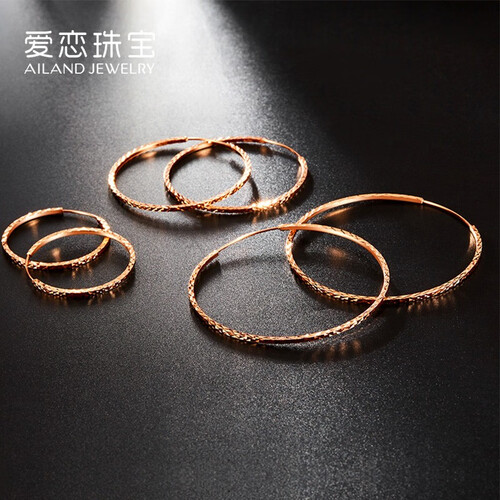 爱恋 玫瑰金色圆形K金耳饰