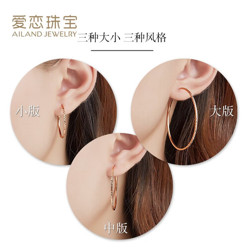 周六福 玫瑰金色圆环K金耳饰