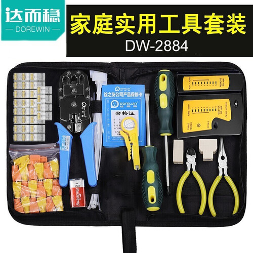 内含三用多功能网线钳,采用防滑手柄,持握感舒适,防脱落。搭配双用网络测试仪,其燕尾锥设计,拆卸自如。