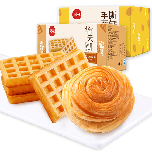 精选新鲜鸡蛋、小麦粉、植物油等食材,经多道工序制作,带来了绵软细腻、满口留香的好滋味。华夫饼和手撕包组合装箱,避免吃腻。