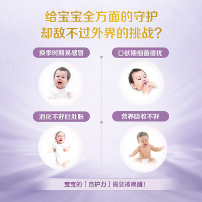 丰富的乳铁蛋白成分,温和细小,营养易吸收,不易上火。天然的益生元成分,呵护宝宝肠道健康,为宝宝提供更细致的保护。