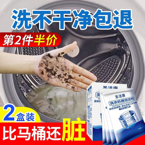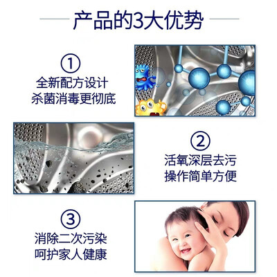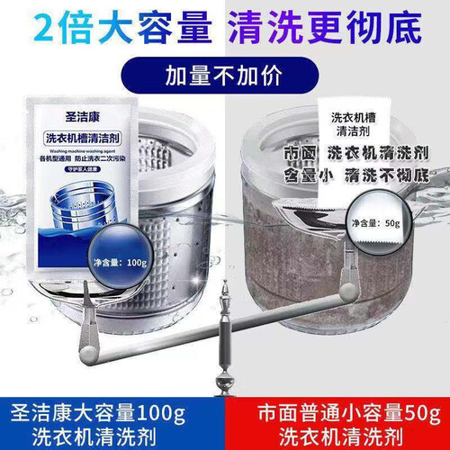 圣洁康洗衣机槽清洁剂含有去污活性酶,可将长期固化的皂垢和污垢先软化后分解,再随水排出,有效避免了衣物的二次污染。
