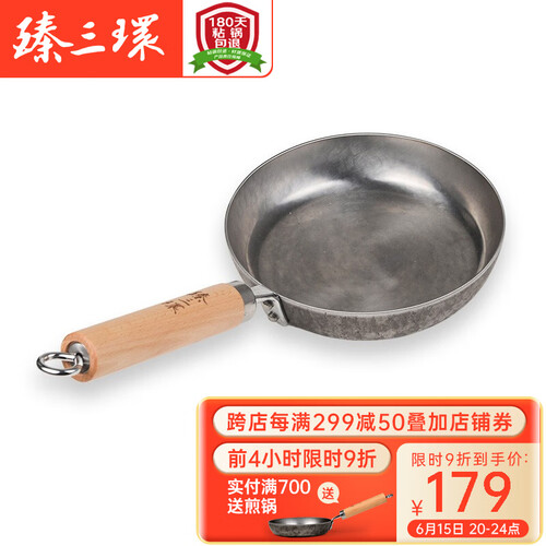 臻三环的这一款平底锅,匠心选用2.75mm加厚的铁板制造,导热更均匀,同时节油少油烟,久用锅底不内拱。