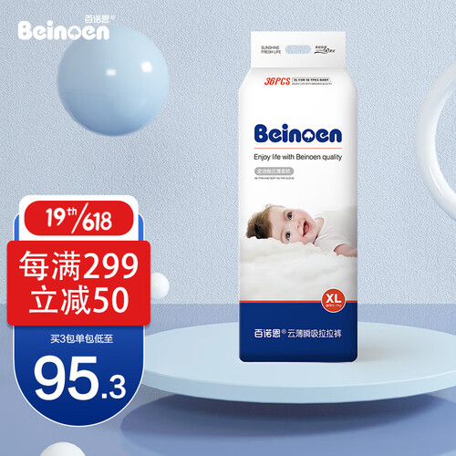 采用智能尿显设计,当拉拉裤吸收到尿液时尿显的颜色便会变深,可提醒妈妈及时为宝宝更换,避免宝宝穿戴时间过久。