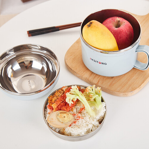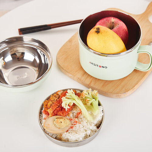 外观选用清新色系,搭配彩色的简洁字母点缀,具有小清新风格;采用分层结构,可以分类置放不同菜品,有效避免串味。